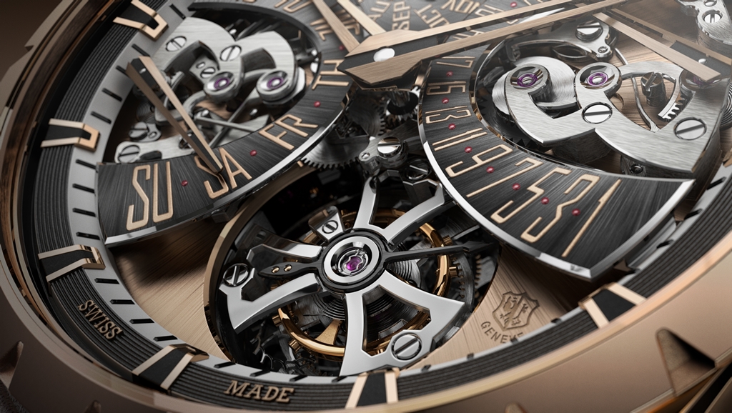 The automatic Calibre RD840 drives the calendar with a 60-hour power reserve, while the caseback reveals a beautifully decorated oscillating weight and meticulous hand-finishing—hallmarks of the Geneva Seal. Further aesthetic touches, such as the historically inspired font and script, honor the roots and visionary outlook that define Roger Dubuis.