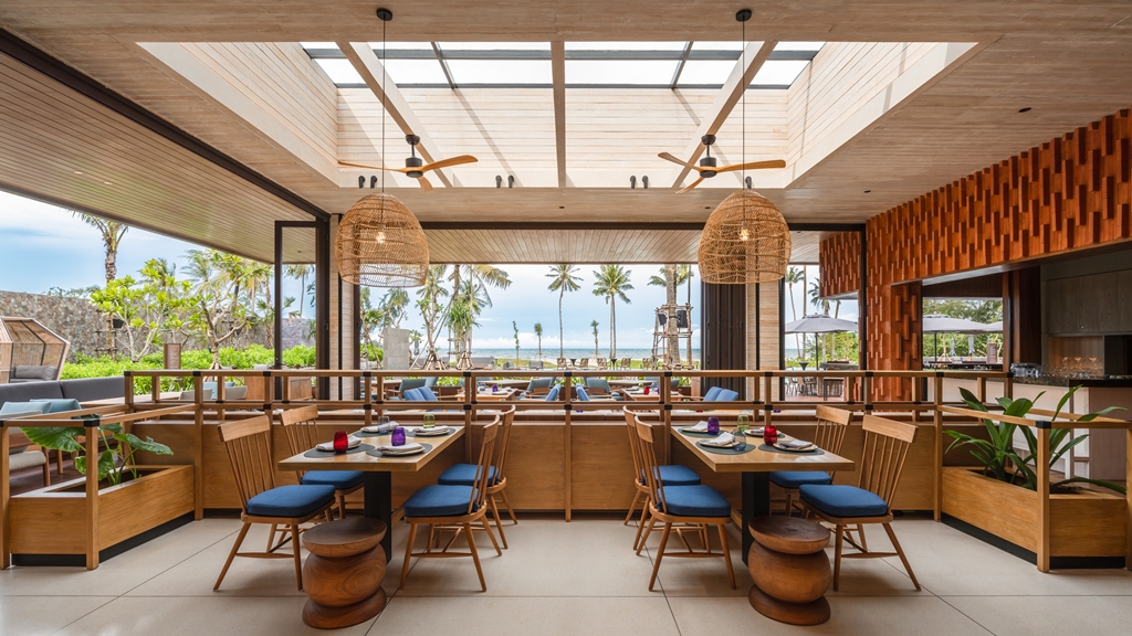 The resort subtly offers more varieties of food than one would usually expect from a relatively young resort. SugarBEATS is a beach‑club‑style restaurant and bar that looks out over the pool and sea. Breakfast leans on an à la carte approach supported by a local buffet: Western options such as steak and eggs are still finding their footing, but the Indonesian dishes on the buffet are where the kitchen really shines, with robust, well‑seasoned flavours that hold up even at scale. Lunch and dinner here is casual and convenient between dips in the pool, even if the menu could use one or two signature standouts; for now, it’s the easy choice when guests want something unfussy with a view.