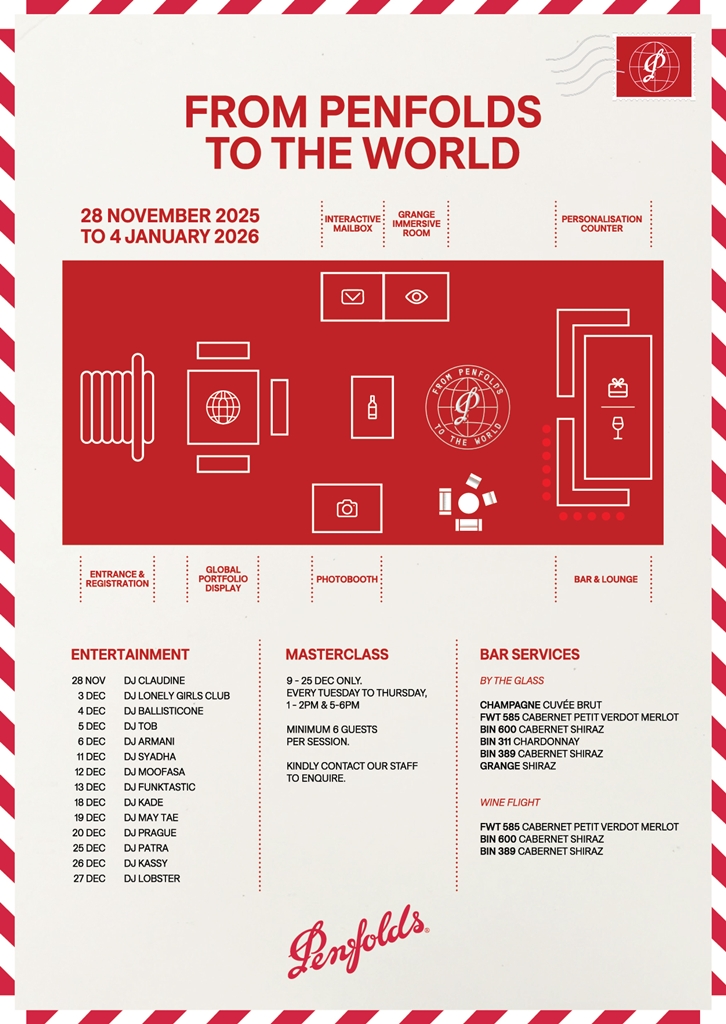 From Penfolds to the World Pop-up is open daily at EmSphere Bangkok from 29 November 2025 to 4 January 2026. Visit www.penfolds.com for more information.